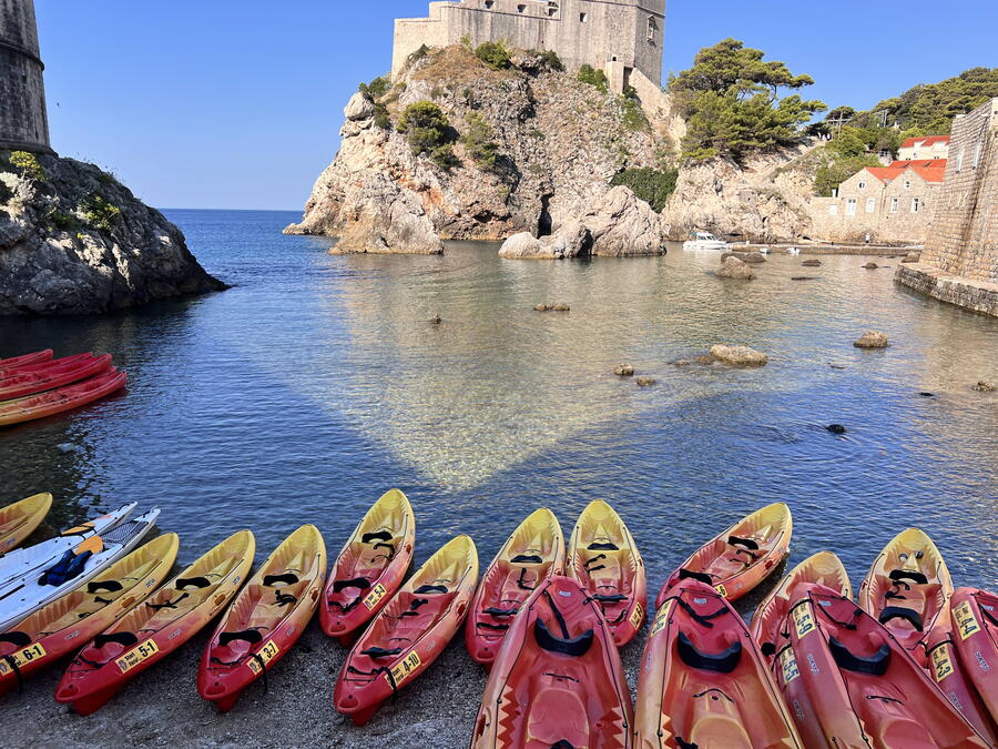 For my own time here, I went along that coast on a sea kayaking tour, which was challenging but fun. I had never gone on a kayak before, and being on this azure, crystal-clear ocean made the physical challenge easier. Our guides took us to Otuk Lokrum, an island with a Benedictine monastery, where we rested. We then headed to a cove where other kayakers and visitors swam and snorkeled. After we returned, I wanted to explore the town, but the crowds became overwhelming. I was somewhat remorseful but glad I decided to stay on the ship.