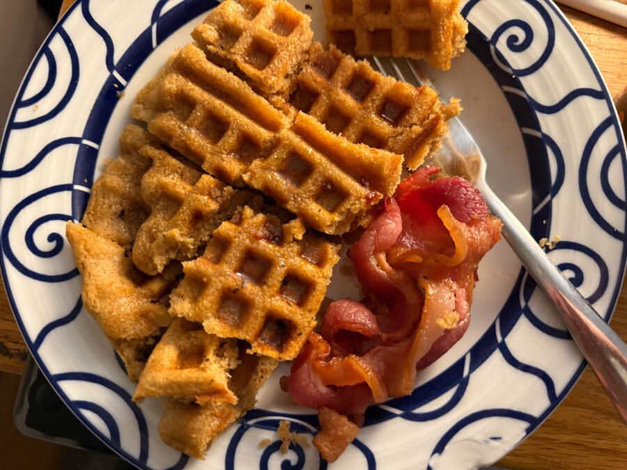 RAS, JRS and I tried the breadfruit mix by making waffles. Truthfully, they didn’t taste significantly different from waffles with any other mix like Krusteaz or Bisquik. But RAS and I did notice they were quite dry in texture. I’m not sure if making them with moisture-laden ingredients or having fruit like berries or bananas would have made difference, but that’s what I would do next time.