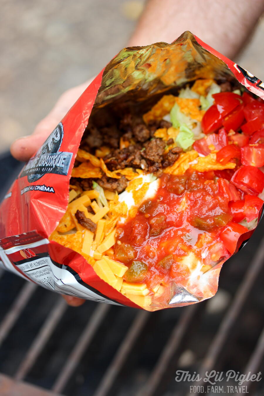 I must admit – I like Frito Pie. Well, I mostly like the chili that goes with it, but the salty crunch of the tiny, curled corn chips just adds that tasty textural element. This recipe is very similar to that beloved southwestern dish, except you simply sauté ground beef and add taco seasoning, rather than make a whole pot of chili. It’s an easy way to get that Frito Pie fix and not have to knock yourself out.