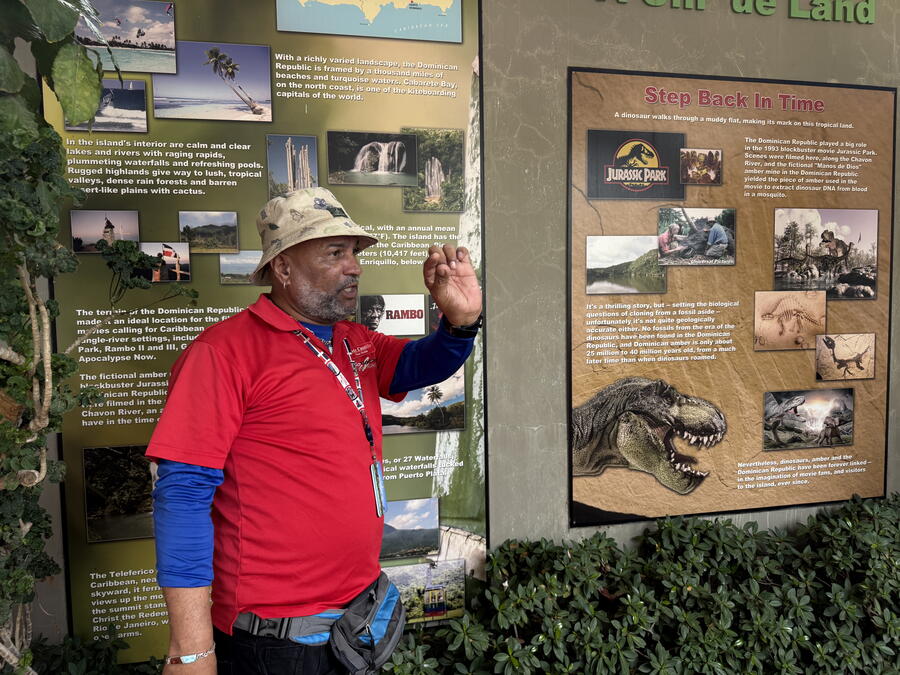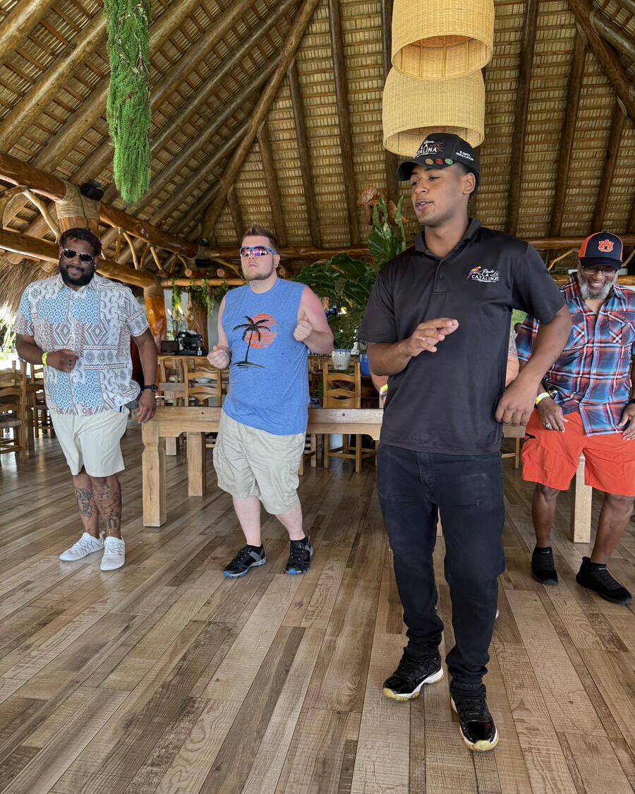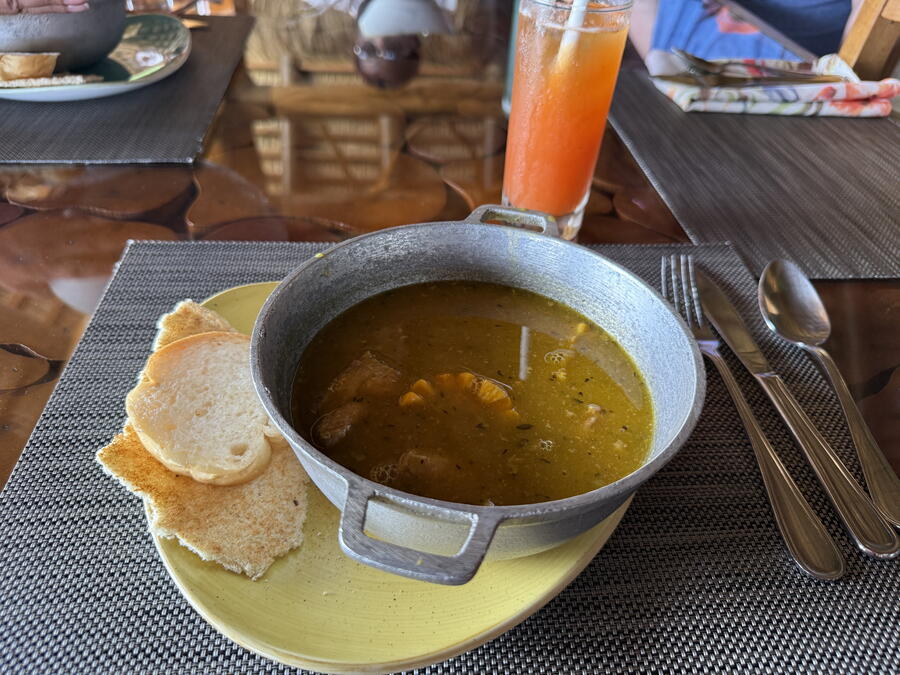 We first learned about amber, the mineral that’s abundant on the island and popularized by the first “Jurassic Park” movie. We then boarded a slightly crowded van that first went to a rum museum, where we learned how the spirit was made and sampled fresh sugarcane juice (with or without rum). Next, we stopped at Rancho La Catalina, where we did the shore excursion as described – dining on sancocho (a meat, vegetable and rice stew and the Dominican national dish), drinking unlimited cocktails and punch and learning both merengue and bachata dances. Finally, we made a retail stop in Puerto Plata, but I didn’t buy anything.