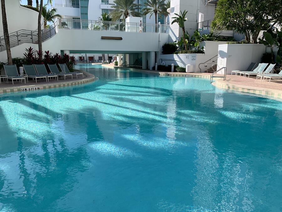 Located on a relaxing South Florida beachfront, the Diplomat offers warm, clear subtropical water to swim in even in December. There are also two large heated pools, stacked over each other on two levels, countless lounge chairs, a split level fitness center, spa, indoor/outdoor bar and several options for eateries. It's a lot like the Gaylord Rockies resort and probably other convention hotels. But it's probably one of the nicer ones I've stayed at.