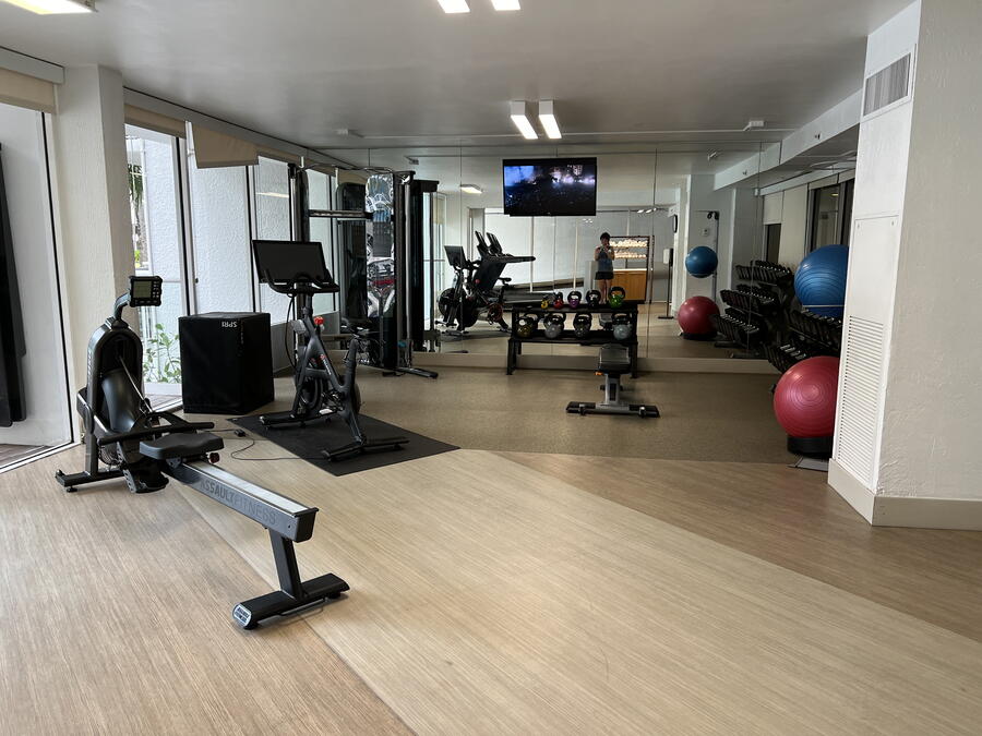 I have never liked the fitness center at the Hilton Marina. It seemed more like an afterthought, sticking cardio equipment and weights into a small room with excessive condensation from the inside A/C and outside humidity. But they have now streamlined the place with newer free weights, fewer treadmills, a rower and a Peloton bike, which makes me happy.