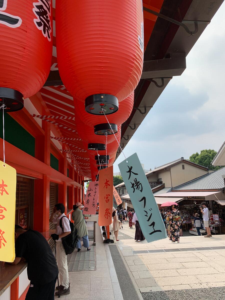 On our first day in Kyoto, at the same as our food experience, we toured the Fushimi Inari shrine (taisha), one of the city's most prominent points of interest. The complex is part of a much larger park with a network of trails that lead up to Mt. Inari, the highest point in the city. If we hadn't already exhausted ourselves walking around with the group in the sultry heat, we would have attempted it. As such, we were content to just cover the main grounds.
