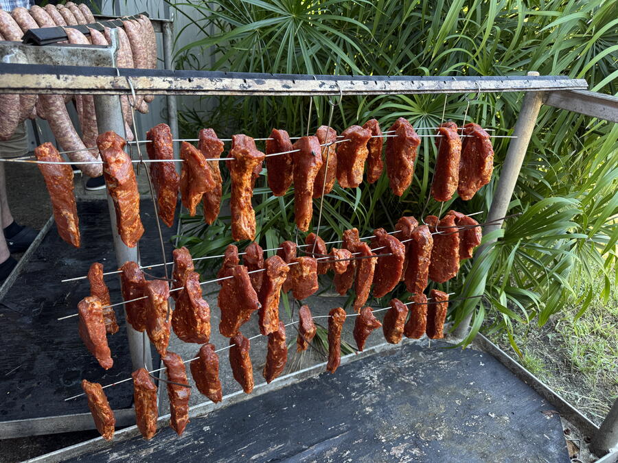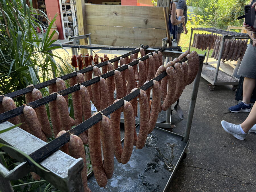 Wayne Jacob’s owner is Jarred Zeringue, and he oversees the production of the meats and the food served. I tried white beans, rice, and sausage as well as a bit of someone else’s fried catfish – all of it hearty, all of it delicious. In the second place, Holly Lions has taken over her family business and makes Andouille and other meats, which has now been run by four generations (and is incidentally not related to Wayne Jacob’s). Both owners showed off their smokehouses and the types of wood they use, which gives Andouille its amazing flavor.