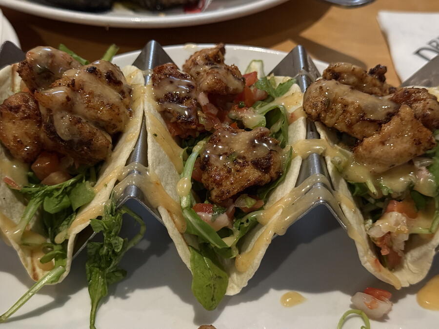Since we were still full from the lunch at Wayne Jacob’s, we only ordered appetizers in addition to oysters. These included boudin balls (sausage and rice fritters), fried alligator bites, blackened gator tacos (probably the tastiest plate offered), and a crawfish sampler platter with etouffee, mac and cheese, and fried cake. I was surprised at the tenderness of the gator meat, which I probably wouldn’t have tried if it hadn’t been pre-ordered. We finished with beignets, which were the perfect dessert, even if we were even more stuffed by evening’s end.