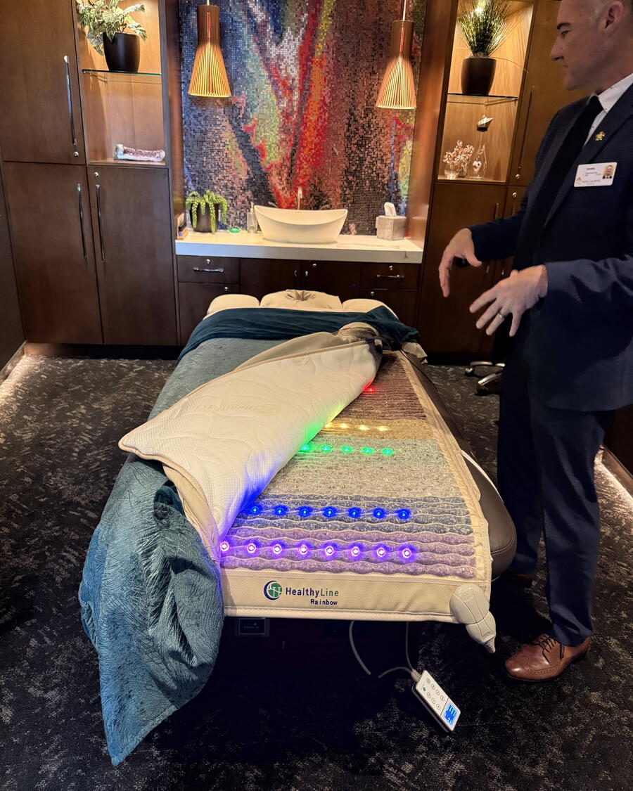 This extensive facility was previously several pools, including the large main one. That’s when the tribe opened a 73,000-square-foot building that houses spa rooms with unique treatments, including quartz pebbles, chakra lights and hydrotherapy inserts in the beds. Another defining feature of Sec-He is the individual suites, separated by gender, that have mineral bath pools. Wearing your swimsuit is optional, so it’s like taking a bath in your own home. The facility also features two salt lockers for respiratory issues, steam rooms, saunas, cold plunge pools, a nail salon, and private lounge facilities for groups, as well as a snack bar.