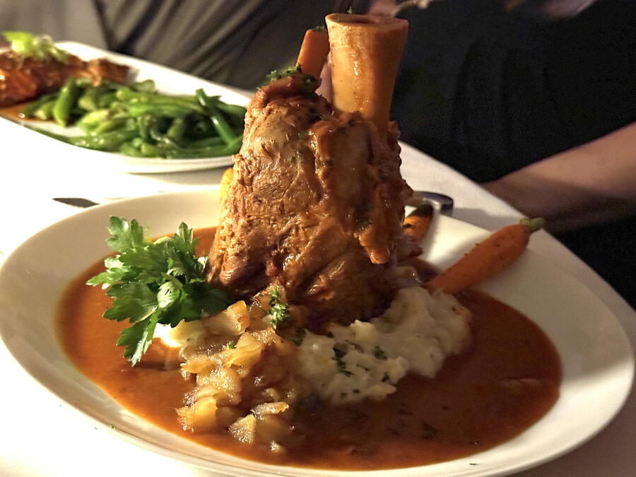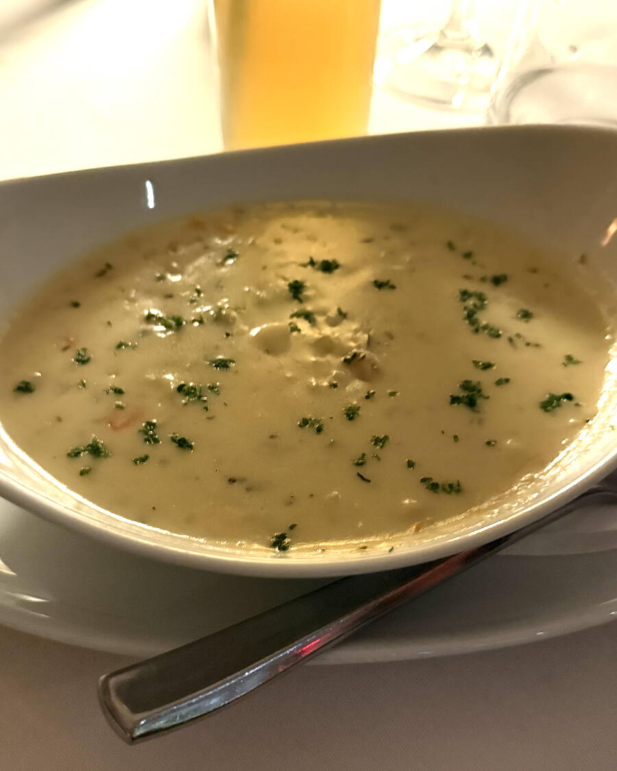 Our group chose classic American and continental entrées and starters, such as Caesar salad, roasted beet and avocado salad, clam chowder, osso buco, chicken piccata, and honey-glazed salmon. I chose the chowder and salmon, which turned out to be fantastic choices. However, I sampled everyone else’s dishes, and these were equally delectable and carefully crafted with high quality. Our evening was capped off with irresistible desserts: coconut crème meringue pie, fudge cake a la mode and acai berry sorbet. But what also made the dinner special was Danny, the restaurant's maître d’ and all-around dynamo.