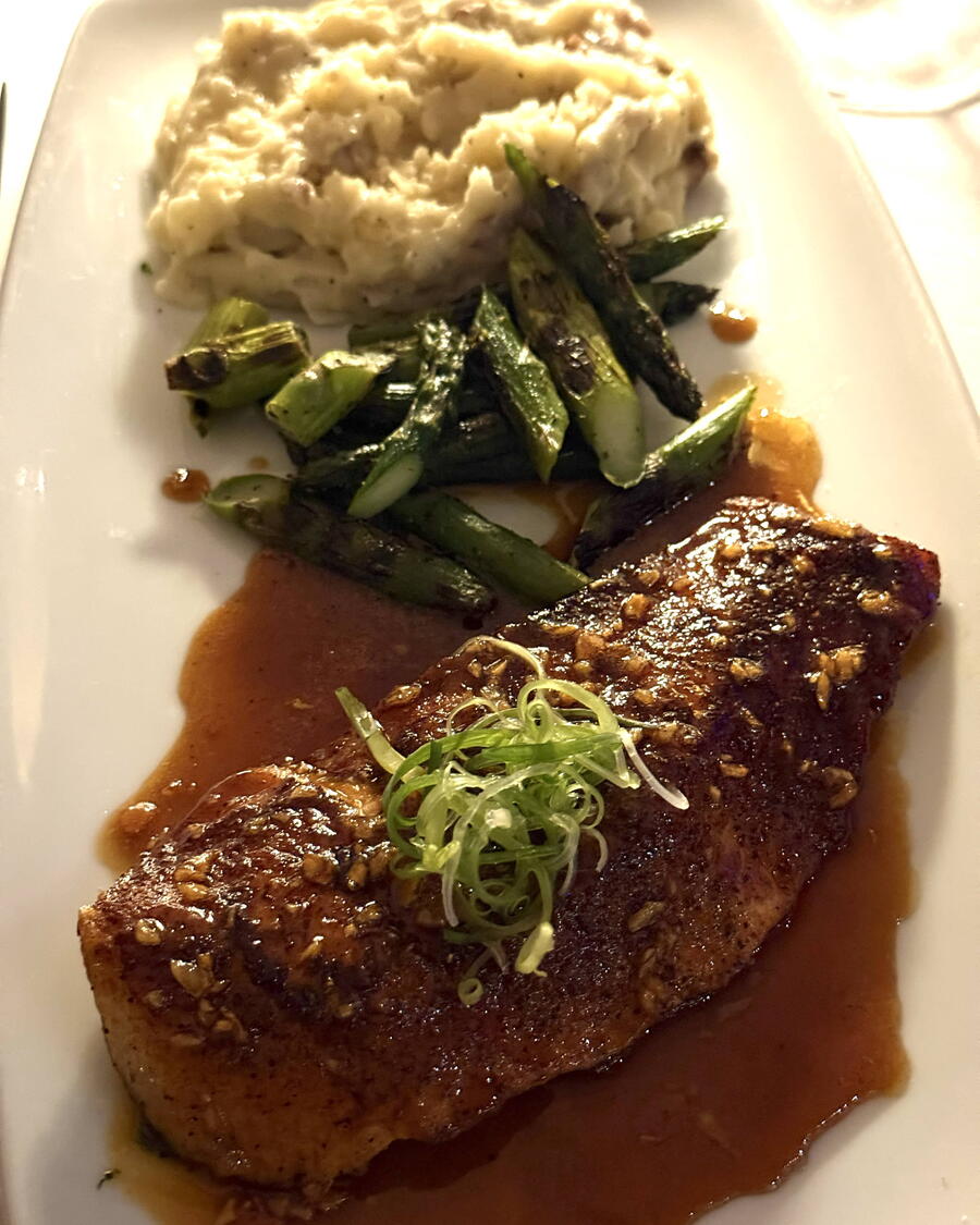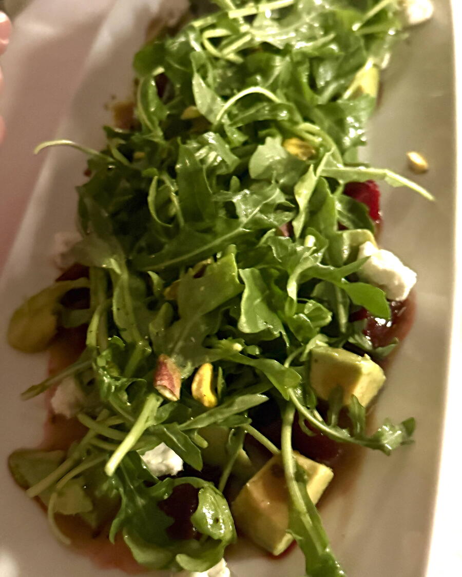 I won’t say too much about this downtown place, which is right in the heart of Palm Canyon Drive, the city’s main drag. That’s because I don’t think it was at its best culinary showing. They hosted our conference last evening, and that meant hosting all the NATJA staff and attendees in a cavernous, sound-bouncing room that typically holds art exhibits. As a result, the noise was deafening, and I could barely hear the conversation with those I was sitting next to.