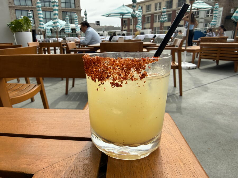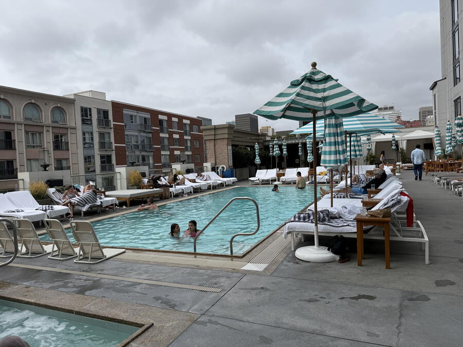 Because of the credits, I enjoyed a couple of drinks and sat on the Pendry’s pool deck over two days, which is on the third floor. There are about a half-dozen private cabana areas with outdoor couches, chaise-lounges and TV screens, but nobody was using them when I was there. I sat at some outdoor tables next to the bar. There were about a dozen and half people around the pool and hot tub under slightly overcast skies.