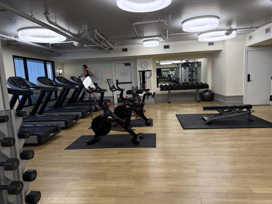 Guests must access the pool through the spa reception area. I must admit I didn’t check this out, mostly because of our super-short stay, but even it was longer, I probably wouldn’t have anyway. As always, I did visit the fitness center, which was quite extensive with plenty of cardio equipment (including Peloton bikes) and free weights. Interestingly, there weren’t any machines. Some of the other services available include use of Cadillac vehicles and complimentary transportation to nearby venues, as well as baby equipment rentals.