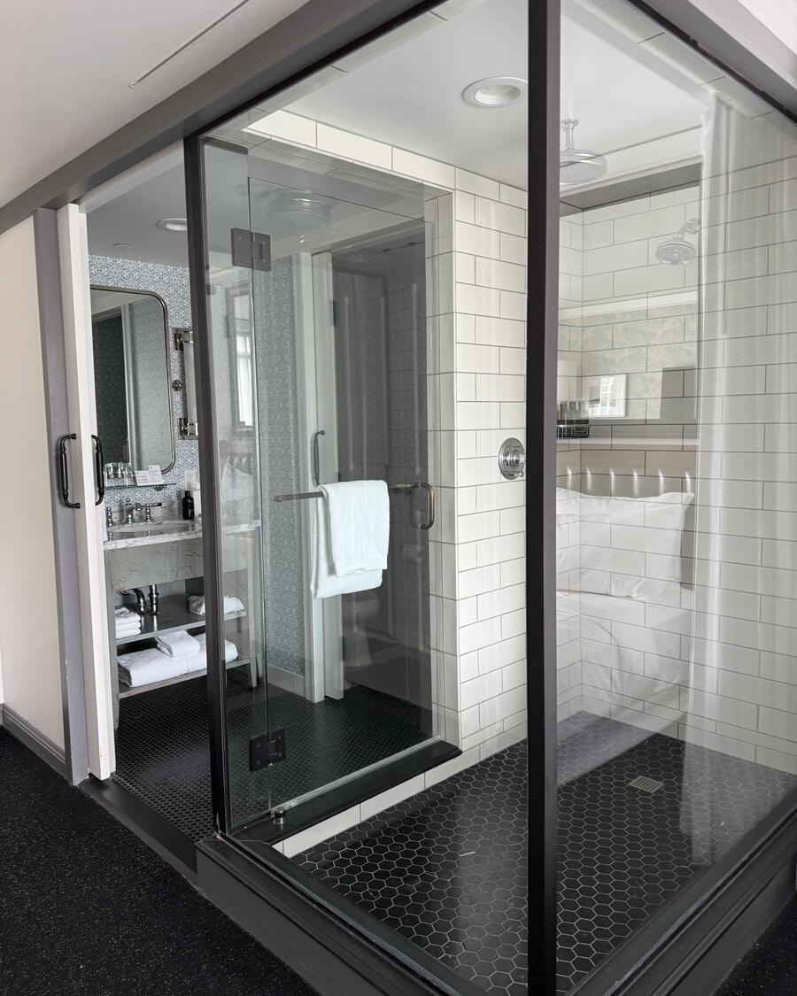 I made my morning coffee with Keurig-type espresso machine with two options for strength. The minibar was well-stocked, with different snacks and drinks, but we didn’t get anything from it, mostly because it wasn’t part of our credit. The bathroom was probably the most outstanding feature, with a large walk-in glass-enclosed stall that overlooked the room. Luckily, there was an outside curtain to hide the shower area for necessary privacy. The Pendry has its own line of bath products, which had an earthy-like scent that was suitable for everyone.
