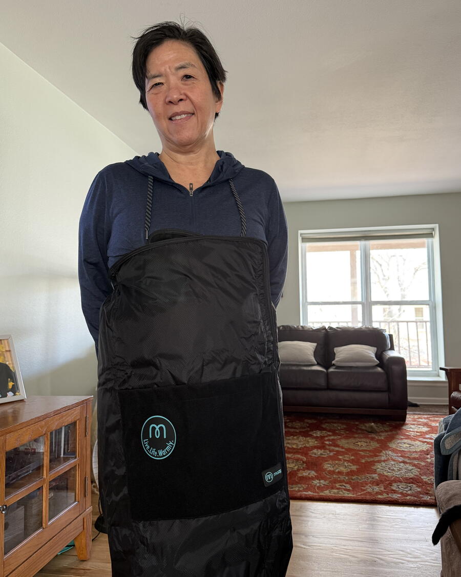 At home, I’m often bundled in a fleece blanket because I easily get cold. So, imagine my surprise and delight at receiving this wrap that’s specifically meant for wear like a jacket.  It doesn’t need batteries or have the bulk of a regular blanket, and it retains up to 500% more heat from the body than a regular blanket. Plus, the design allows for free movement, so it’s ideal for whatever outdoor activity you do. Having pockets in the front, a concealed carabiner, a customized fit, adjustable corners and the Velcro attachment are also thoughtful details.