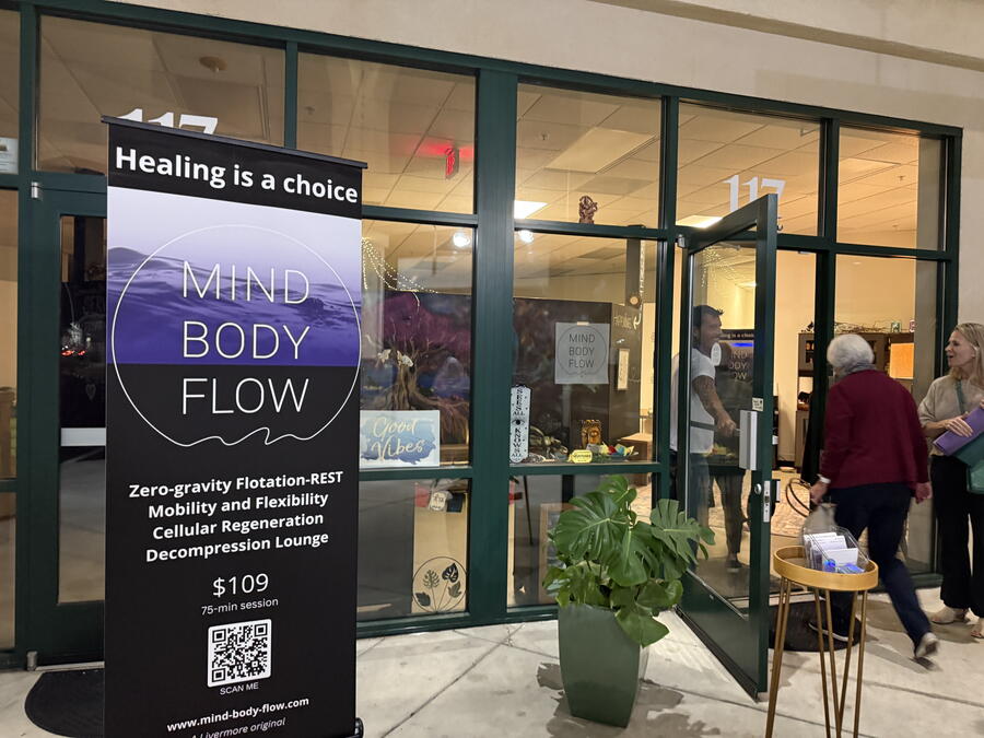 More than a yoga studio, this wellness center in Livermore offers sensory-deprivation tank sessions, infrared saunas, assisted stretching and bodywork, and sound-frequency healing and meditations. Former tech executive Jill Schaub sought a change from her high-demand career and founded Mind Body Flow in 2018. Our group participated in the last activity, where we stretched out on mats and could also have bolsters and cushions for comfort. Her colleague Santiago, an energetic and enthusiastic fellow, led us in the class.